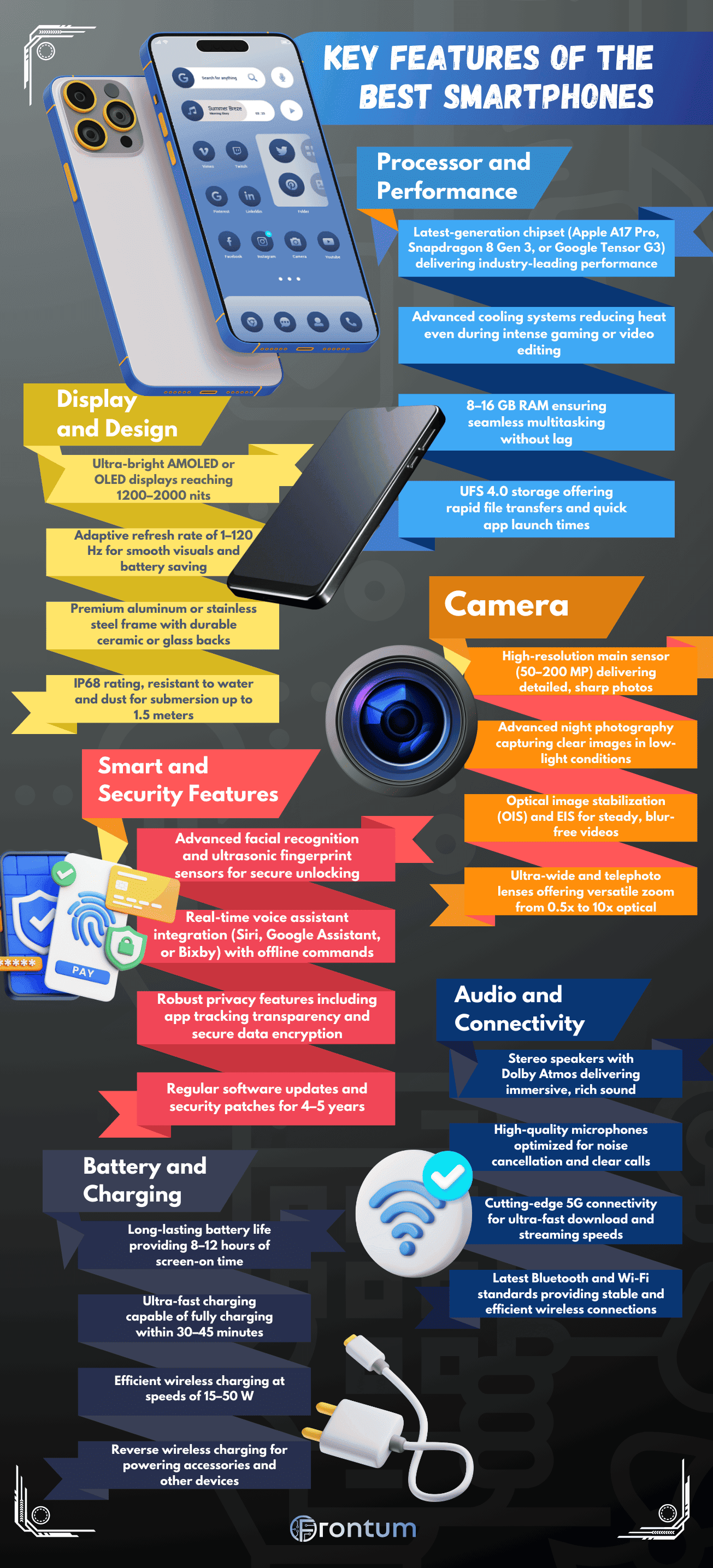 The best smartphones cost between £800 and £1,300. You usually pay over £1,100 if you want the highest specs across all categories—performance, screen, camera, battery, and design.